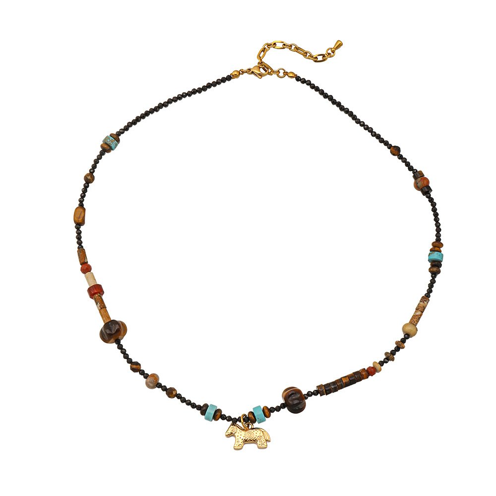 Handmade Gemstone Necklace with Horse Pendant CGEM1012